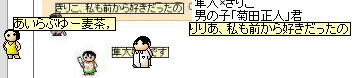 タマゴがポコッと生まれた瞬間、何とフリーズ!! ぬぁ~!!このタマゴどうなっちゃうの?と心配しましたが、タマゴ無事でした。 男の子で、「野島伸司」君としました。 このフリーズのおかげか、何と、こるん君のラブ度はそのままでした。 ホッとしたと思ったら、またもや、ああやちゃんに駆け寄り、あっという間にタマゴが生まれました。 男の子で、「宇佐美啓」君としました。 40歳近くになって、このグループのラブ度ありちゃんは、いなくなっちゃいました・・・。でぃぼす君の結婚は、幻か!? とりあえず、しばしお休みしてもらいましょう。 忍者ブログ [PR]