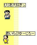ぷりり君・りゅり君・ れんこちゃん(レズっ子)・りゅかちゃん・ まりちゃんのグループを引き続き、40歳まで2年ほど育成。38歳までで、1回の結婚しかなく・・・もうこのグループダメかなぁ~。と思いながら、大好きなBREAKERZのHPをチェック。(ここのHP重いのよね)まりちゃん、「する事ないの?」というので、お風呂に入れましょうかと思っていたら・・・ちょこちょこ動き出す。 いや~、お風呂に入れちゃわなくてよかった。あまりにも重いHPなので、画像は最悪な事態ですが、無事に女の子が生まれました。名前は、そのまま「ころり」ちゃんとしました。 まりちゃんのラブ度がなくなったところで、みんな40歳になったので、いったんお休みしてもらいます。 結局、40歳までりゅり君は結婚ありませんでした・・・(/_;)