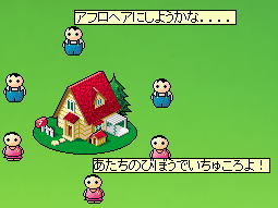 とりあえず、こんな感じに成長♪ りきやくん、ガリ勉くん ちよとくん、野球少年 りんちゃん、コギャル まりちゃん、女学生 優実ちゃん、チアガール 全員ラブ度ありなのに、案外卵が生まれない・・・。変身後やっと1つ生まれました。これで、このグループ3つめ。 女の子が生まれたので、「高橋ひとみ」ちゃんと名づけました。 全員20歳を越して、あんじゅくんとまりちゃんには、卵が生まれませんでした。なので、次の卵を割ることに・・・。 そこで、悲劇がぁ・・・。パラメーターを確認しているうちに、6人中2人が突然の家出。びっくりして、止めることもできず・・・(/_;) 家出した原人ちゃんは、帰って来るのでしょうか??? PR 全員ラブ度ありグループの育成です。